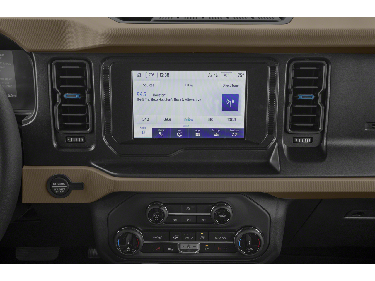 - Medium Sandstone w/Black, Heated Leather-Trimmed/Vinyl Bucket Seats