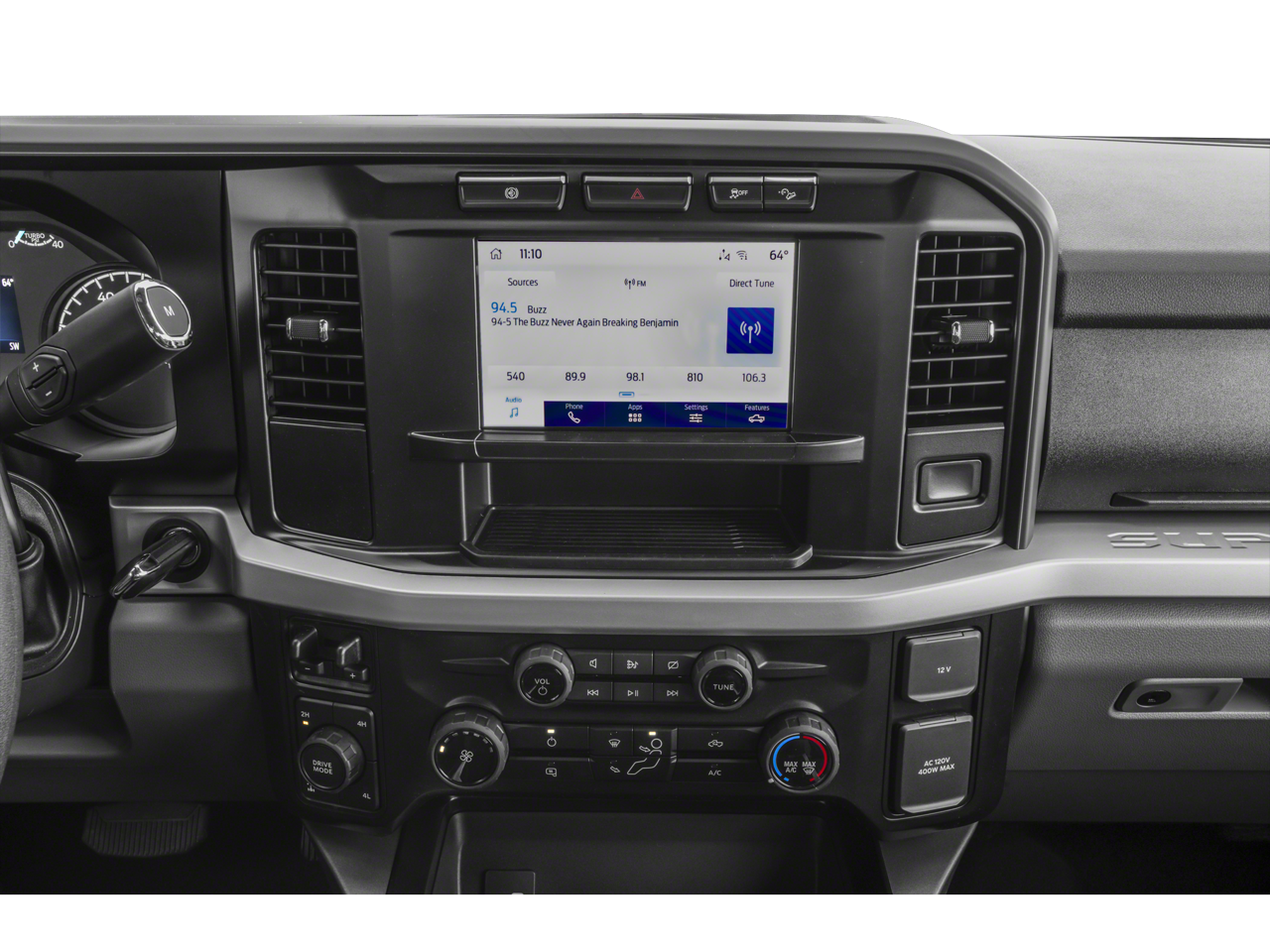 4WD, Air Conditioning, Auto High-beam Headlights, Auto-dimming Rear-View mirror, Brake assist, Delay-off headlights, Electronic Stability Control, Emergency communication system: SYNC 4 911 Assist, Engine Block Heater, Exterior Parking Camera Rear, Front fog lights, Fully automatic headlights, FX4 Off-Road Package, GVWR: 14,000 lb Payload Package, Hill Descent Control, Off-Road Specifically Tuned Shock Absorbers, Order Code 623A, Power driver seat, Power steering, Power windows, Radio: AM/FM Stereo/MP3 Player, Remote keyless entry, Steering wheel mounted audio controls, SYNC 4, Telescoping steering wheel, Tilt steering wheel, Unique FX4 Off-Road Box Decal, Variably intermittent wipers.